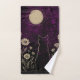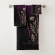 Celestial Black Cat Floral Purple Bath Towel Set