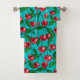 Conjunto De Toalhas Cerejas vermelhas em turquesa