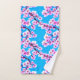 Linda cereja floresce em galhos num fundo azul. É perfeito com a cortina de chá e tapete de banho na coleção de banheiro
