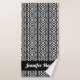 Elevate your bathroom decor or beach day style with this stunning, high-contrast personalized towel. Featuring an intricate fusion of bold geometric "quilt-block" shapes and delicate hand-drawn floral illustrations, this towel is designed for those who love modern, monochrome aesthetics. This design puts a fresh, botanical spin on the classic checkerboard trend, alternating bold geometric blocks with elegant line-art florals. The crisp black and white palette ensures it fits seamlessly into any home decor style, from minimalist to bohemian.