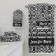 Conjunto De Toalhas Chic Black & White Floral Checkerboard Custom Name