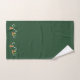 Aqui está um bonito conjunto de toalhas de três partes que vai vestir seu convidado ou banheiro principal para a temporada de Natal! Apresenta uma imagem de ouro e sinos de Natal vermelhos ligados a uma fita branca e decorados com galhos. As imagens estão no fundo de cada peça, e colocadas sobre um fundo verde de Natal escuro. A toalha de banho é uma bonito xadrez verde e dourada, com a imagem colocada na borda inferior verde, que está alinhada em vermelho. Festivo!