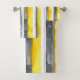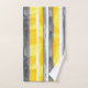Cinzas amarelas de cor aquosa e toalhas listradas brancas. Design de fitas verticais pintadas à mão, com estilo grunge, em cinza amarela e branca fornecem uma bela e moderna aparência para seu Banheiro.