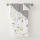Estas toalhas de banheiro apresentam um design geométrico amarelo moderno e cinza com um padrão terrazzo moderno. Personalize as cores clicando em Editar design.