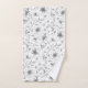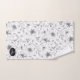 Um belo padrão de traços de flores desenhadas à mão em tons de cinza em preto é usado para criar os pedaços dessa coleção moderna. O conjunto de toalhas em greve mostrado aqui também apresenta texto de script manuscrito opcional em branco em um plano de fundo preto. Procure ID939 para ver todos os produtos neste conjunto de design.