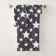 Toalhas de tendências com um padrão de estrelas brancas grandes e pequenas em um fundo de cinza de ardósia.