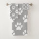 Impressões brancas sobre o conjunto de toalhas de fundo da cinza