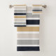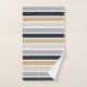 Cinza, toalha de banho de listras pretas e de estanho, com cortina de chá correspondente. Cores neutras calmantes de cinza, preto e decor de banho bronzeado. Por celeste@khoncepts.com
