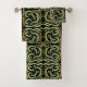 Bath Towel Set Of Three Sizes decorative bathroom amenity and home furnishing decor accessory printed with a Circular, Linear And Tapered Shapes Abstract Art four part mirrored image repeating pattern original graphic design illustration by TheFabricSeal at Zazzle #ZazzleMade https://www.zazzle.com/store/thefabricseal