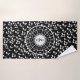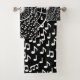 toalha de designer de música em moda magnética em preto-e-branco clássico com um círculo de cinco rodas com notas de música aleatórias brancas em segundo plano, excelente adicional ao tema musical banheiro ou suíte