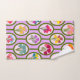 Este conjunto de toalhas tem uma design moderna do século médio de cordas de círculos com buquês de flores em cada círculo.