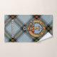 Crachá da crista de Clan Bell rodeado por uma correia e fivela sobre fundo de tartã. Texto personalizado em cada toalha.
