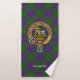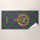 Crachá da crista Clan MacDonald rodeado por uma correia e fivela sobre fundo tartano. Texto personalizado em cada toalha.