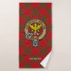 Clan MacDonald do crachá da crista Keppoch cercado por uma correia e fivela sobre fundo tartano. Texto personalizado em cada toalha.