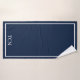 Um conjunto clássico tradicional de toalhas de banho azuis marinho e branco monogramadas. O conjunto inclui pano de lavar, toalha de mão e toalha de banho. Também pode ser vendido separadamente.