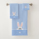 Conjunto De Toalhas Coelhinho bonito e monograma em azul claro