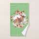 Esta torcida toalha verde de mão apresenta uma flor de papoila vermelha e uma coroa verde de folhas e dois coelhos de coelho querido. Decorre o seu banheiro para a estação de primavera e para o feriado de Páscoa. Comprar que o conjunto ou comprar separa, a escolha é sua. As toalhas de banho especialmente concebidas são um bem intencionado aquecimento doméstico ou outro presente para essa pessoa especial.