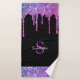 Aproveite este design elegante com seu nome e monograma ou inicial com pingos cinzentos azuis e roxos brilhantes e cinzentos roxos sobre fundo preto.
