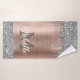 O nome e a toalha de banho monograma são passados por um brilho prateado feminino moderno. Este design apresenta cinza prateada (cinza) brilho brilhante gotejando sobre fundo de metal piscado cor-de-rosa com modelo de texto personalizado monograma inicial e nome próprio personalizado. Presente feminino perfeito. Se precisar de ajuda ou itens correspondentes, entre em contato comigo. Por favor, note que esta design é um efeito fotográfico impresso sem brilho real.