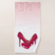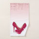 Um design moderno e moderno em uma toalha. O fundo tem uma imagem de brilho brilhante rosa-brilhando, ao longo do topo. O resto do fundo é um delicado gradiente cor-de-rosa pastel. Um par de estiletas cor-de-rosa alto adiciona uma vibração na moda.