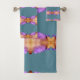 Bonito toalha listrada de Mandala para combinar a cortina do chá e o tapete de banho. As cores são lacrimejo, roxo, ouro e creme. Obrigados para a Creative Fabrica para alguns dos elementos na design.