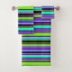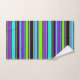 Traga energia vibrante para o seu banheiro com esta toalha riscada arrojada colocada em roxo, aqua e chartreuse. Perfeito para adicionar um toque novo e moderno, essas toalhas combinam estilo com prática cotidiana. Disponíveis como um conjunto completo ou individualmente, eles são ideais para iluminar sua casa ou dar a alguém especial.