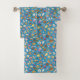 Toalha de banho com ilustrações de comida de café da manhã super fofinhas. Esta design de padrão divertido tem cereais, leite, bacon, ovos, rosquinhas e tantos outros rabiscos de comida fofos.