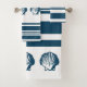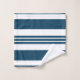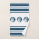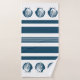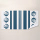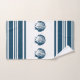 Design náutico com conchas azuis e decoração de listras em fundo branco