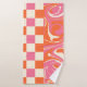 Checks and Swirls é para quem ama retrô, design de tendências e uma estética rosa e laranja. Esta design poderia fazer o presente perfeito para um Filho, filha, ou só para si se você ama a design retrô moderna. As toalhas de banho exibiam este poço de design e faziam uma adição de excelente a qualquer banheiro.