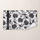 Transforme seu banheiro com este elegante conjunto de toalhas com uma cor damasco floral preto elegante em um fundo branco personalizável. O monograma opcional vem branco com sotaque de listras pretas.