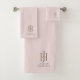 Adicione um toque de elegância às toalhas de banho com um monograma pessoal com iniciais coloridas de tipografia elegantes, a rosa-pincel.
