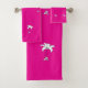 Conjunto De Toalhas Cor-de-rosa-quente com repetição plana branca