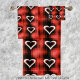 Este design gráfico, foi digitalizado, em um padrão Abstrato, tabuleiro de xadrez, com pequenos corações negros, em corações brancos exibidos em quadrados vermelhos e pretos.