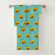 Uma fotografia de uma flor amarela de mandioca enfeita este legal conjunto de toalhas! Personalize mudando a cor de fundo para se adequar!