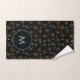 Este conjunto de toalhas de banho apresenta um modo atômico inspirado na Idade do Espaço de Meio século intercalado com pontos aleatórios num padrão colorido. Todas as quatro cores e o plano de fundo podem ser editados para uma aparência personalizada. A toalha da mão apresenta um monograma fácil de personalizar.