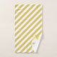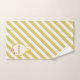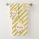 Conjunto de toalhas de moda com desenho de coroa de rainha bonita e flores rosa com listras diagonais douradas e brancas no fundo. O texto BRILHE pode ser personalizado.