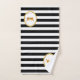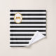 Toalha elegante com bela coroa com listras pretas e brancas sobre o fundo. Toalha moderna Chic.