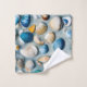 Este conjunto náutico de toalhas marítimas apresenta uma pintura aquosa de cascas de mar azuis e beges numa praia azul. Criado com um programa de arte da IA. Personalize-o com um nome em um script manuscrito elegante.