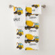 Misturador de cimento amarelo/toalha de banho de caminhão de construção personalizada com o nome do seu filho para o banheiro
