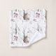 Uma toalha de banheiro de animais da selva fofa, com um urso, coelho coelho, veado e coruja em fundo branco.