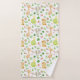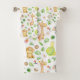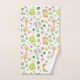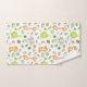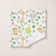 Uma toalha de banheiro de animais da selva fofa com uma girafa, macaco, elefante e tartaruga em um fundo branco.