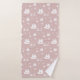 Uma toalha de banho pirata personalizada para crianças com um padrão de âncoras, naves, e crânio e ossos sorridentes. O esquema de cores é rosa e branco empoeirado. Simplesmente personalize o nome, adicione essas toalhas ao seu carrinho e aproveite-as em casa.