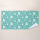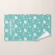 Uma toalha de banho pirata personalizada para crianças com um padrão de âncoras, naves e crânio e ossos sorridentes. O esquema de cores é branco e alto. Simplesmente personalize o nome, adicione essas toalhas ao seu carrinho e as aproveite em casa.