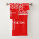 CONJUNTO DE TOALHAS CRISTÃOS VERMELHOS E BRANCOS MONOGRAMA DE NEVE