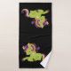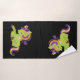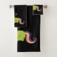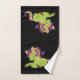 Conjunto de toalhas com uma imagem de um unicórnio estilo Frankenstein. Cor roxa e verde. Muito fofo.