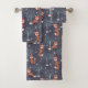 Charming red foxes in scarves wander a snowy blue forest of evergreens and mountains. Whimsical and wintery, perfect for cozy style.