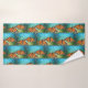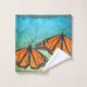 Toalha Borboleta Monarch, em verde e azul, com borboletas laranja.