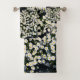 Refresh your bathroom with this bath towel set printed in a vibrant all-over design of white daisies flourishing on a lush green meadow, infusing spa-like serenity and natural elegance into your daily routine. Made from plush, highly absorbent cotton terry cloth that's soft against the skin, quick-drying, and fade-resistant after washes, it includes bath and hand towels with woven edges for durability. Hang them on rods to showcase the floral pattern as stylish decor.