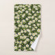 Refresh your bathroom with this bath towel set printed in a vibrant all-over design of white daisies flourishing on a lush green meadow, infusing spa-like serenity and natural elegance into your daily routine. Made from plush, highly absorbent cotton terry cloth that's soft against the skin, quick-drying, and fade-resistant after washes, it includes bath and hand towels with woven edges for durability. Hang them on rods to showcase the floral pattern as stylish decor.