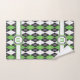 O Argyle retro 8 bits com este esquema verde, cinza, branco e preto que escuta os jogos de jogos de fliperama da antiga escola. Personalize o monograma na mão e a toalha de banho para uma decoração única para o seu banheiro. Estes itens podem ser comprados como um conjunto correspondente ou como peças individuais.